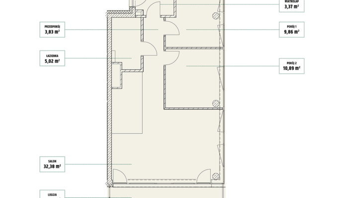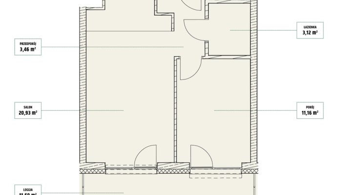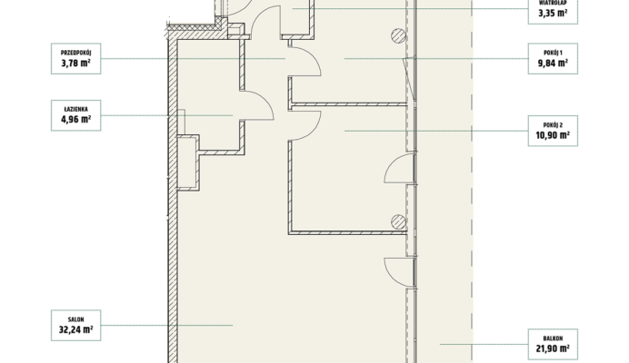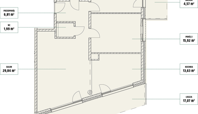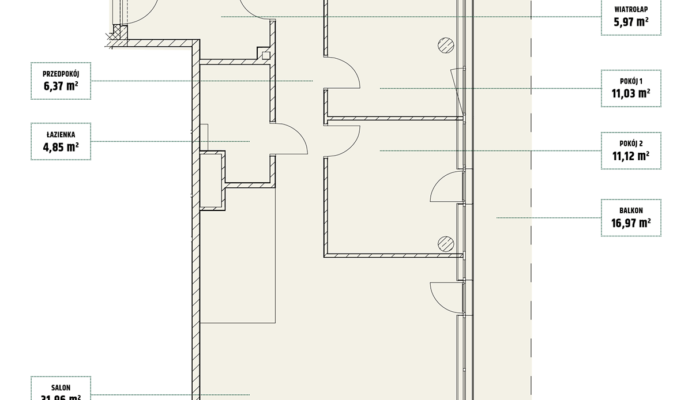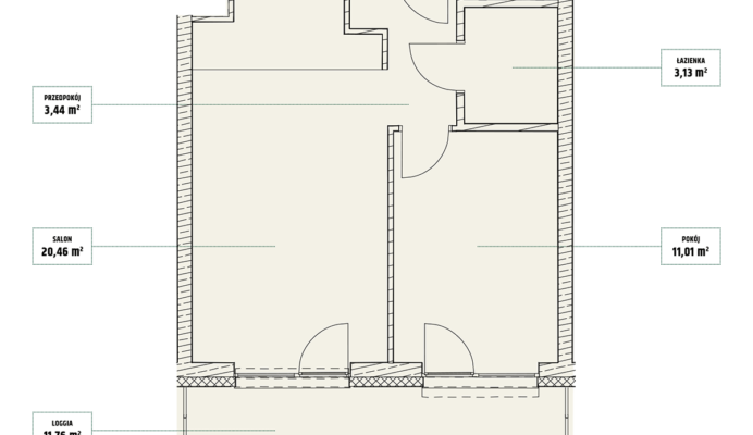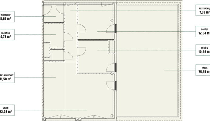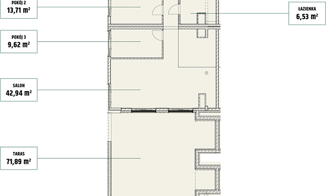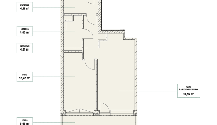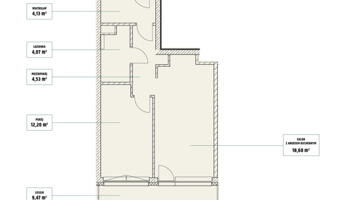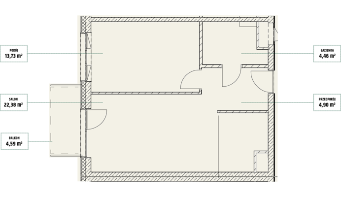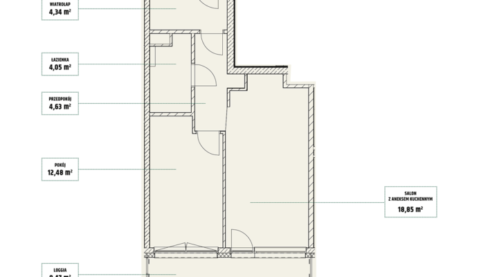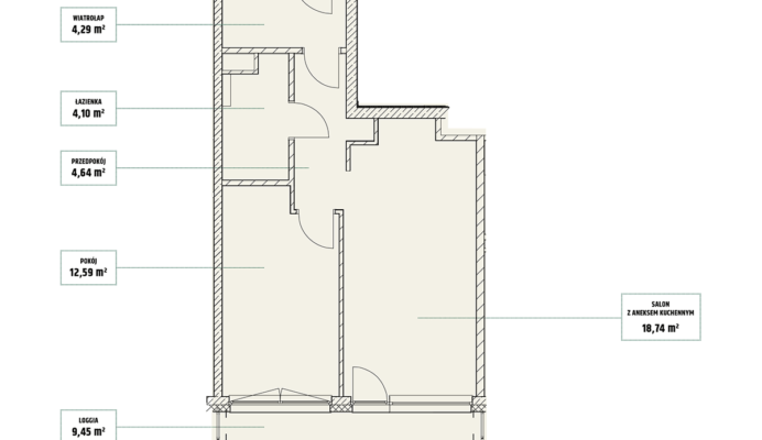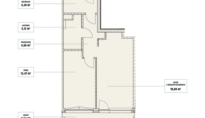 | Mieszczańska 14 lokal 77 | Piętro7 | Liczba pokojów2 | Powierzchnia46,36m2 | Przestrzeń zewnętrzna11,73 m2 |