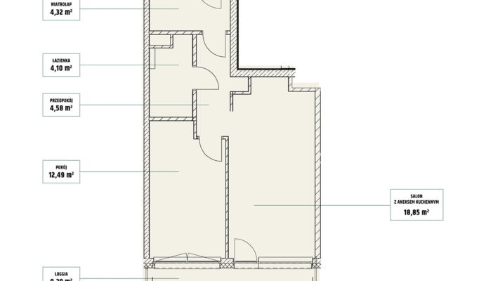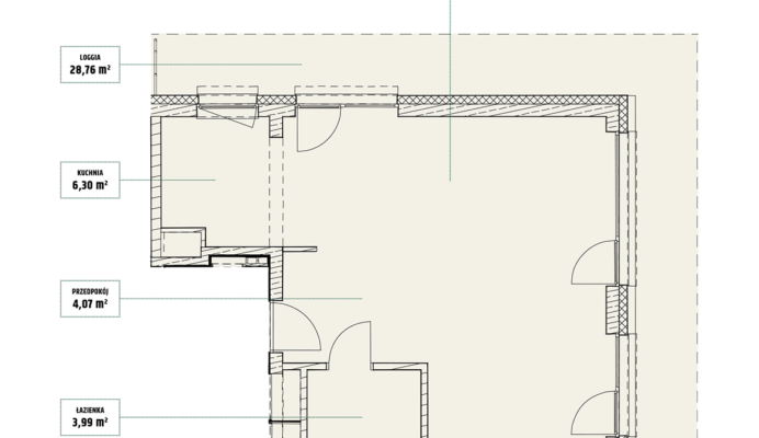 | Mieszczańska 6 lokal 26 | Piętro6 | Liczba pokojów2 | Powierzchnia40,91m2 | Przestrzeń zewnętrzna11,36 m2 |