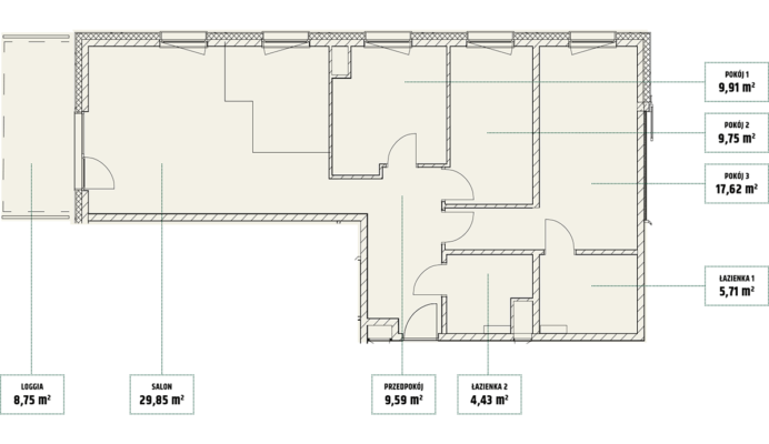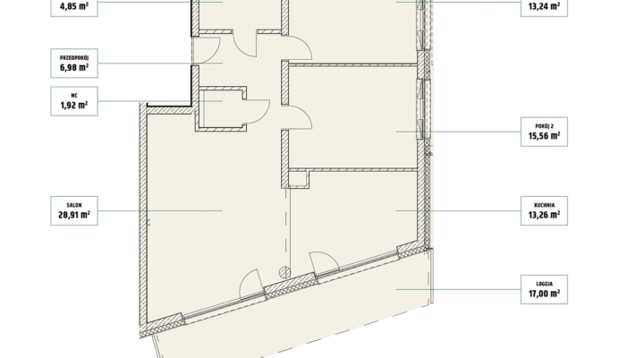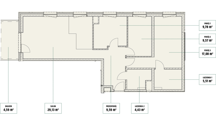 | Mieszczańska 14 lokal 73 | Piętro7 | Liczba pokojów3 | Powierzchnia63,55m2 | Przestrzeń zewnętrzna4,59 m2 |